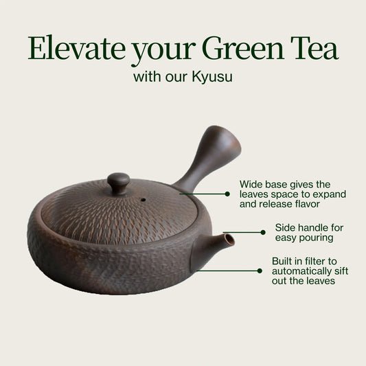 To brew up a delicious cup of this shizuoka sencha, you’ll need a kyusu teapot. The ideal teapot for this is the Fukamushi teapot, as this teapot has a circular mesh filter that makes it easier to sift out the tea leaves as you pour. Without this special teapot, you run the risk of the fukamushi sencha clogging as you pour, causing it to overbrew.